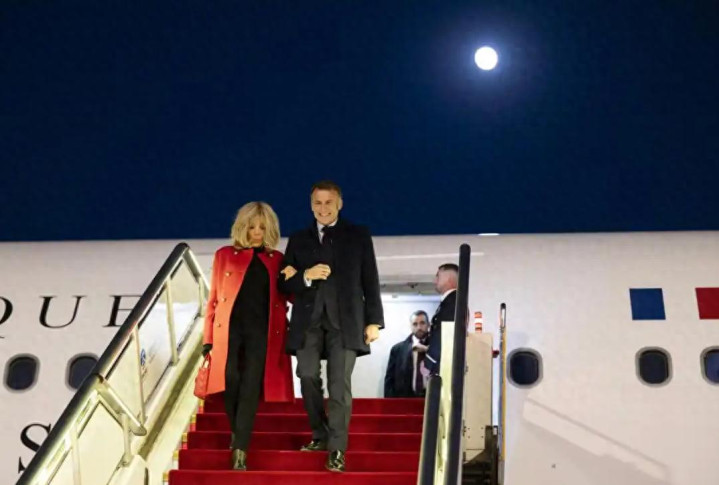 马克龙抵达北京后发文很高兴